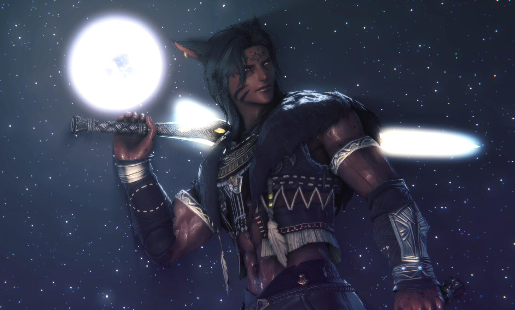• novice: -• misc. skills: Memory retention, learning, stealth, perception, investigation, athletics, acrobatics, sword-craft, survival, natural lore, animal handling, Old Amdapori, mathematics❝ COMBAT STYLE - Frontline Striker / ProtectorMihn'li favours offensive ability and decisive action to end a fight before its prolonging causes undue harm. Speed, agility, wits and precision are his greatest strengths; he is capable of evaluating, observing and maneuvering around opponents quickly, striking at vulnerable points to systematically pick apart defences.While he is competent with sword, shield and bow, his favored weapon is the twinblade; his is a fighting style refined by his Sentinel cadre over millennia studying the manifestations of the Elder Primal Odin. At need he will invoke the Dark Divinity's essence and draw from arcane tattoos a pair of all-sundering egi-blades, becoming a blur of deadly motion on the battlefield.