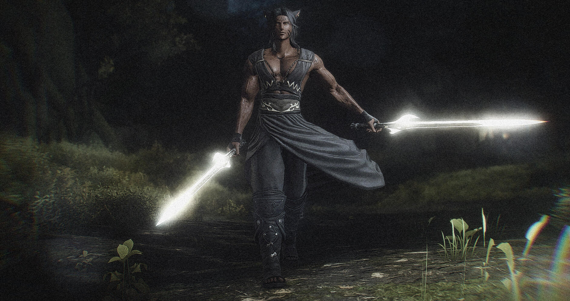 The twins Lusehri and Mihn'li, youngest of the Nahvare Matriarch's children, were born to grave portents. Their father, leader of the elite Sentinels of the Clan, had vanished without a trace before their birth, and in the wake of a proclamation that had echoed down the centuries, Lusehri was burdened with powers extraordinary, related to a prophecy foretelling not only her death but dire upheavals for the Nahvare and the Deep Shroud.No such portents or powers were shared with Mihn'li; nothing to brand him remarkable at the start. The prophecy would forever alter the trajectory of his life all the same, for a deep bond of love existed between the twins from the first and, ever dutiful and without regard to his self, he wished to help shoulder whatever burdens he could for his family. At a very young age the youth swore an oath to Menphina, Goddess of Love and the Moon, that he would follow in his father's footsteps and become a Sentinel of the clan, that he might stand as a stalwart guardian to his sister in the wake of any trials she would have to face.The youth matured quickly in his single-minded pursuit. Once deemed as of little note - certainly by far the least impressive of the twins - Mihn'li revealed as he grew up an avid and fierce intellect. Devotion to his chosen path, a gift for martial prowess and utter self-sacrifice would further cement his status as another of the Matriarch's prodigy children, a moniker to wake chagrin in him. He was one of the youngest Sentinels ever to undergo and pass his Proving, taking his place as his twin's protector even as their bond frayed under the prophecy's demands and the troubled dynamics of the family.It would all come to a head in the emergence of a crisis. A revanchist uprising by a cabal of rogue witches led to the massacring and destruction of the clan's settlement and the stirring of an ancient being known to grant miracles, the fate of whom the prophecy was closely bound to. Through many trials and adversities this being was slain and its deadly designs for the denizens of the Deep Shroud stopped, but not without cost. The Matriarch would give her life to ensure a future for her clan and her children.Tormented by grief and survivor's guilt, Mihn'li gave what aid he could to the rebuilding of his clan's settlement before taking to the wide world beyond the glamour-shrouded glades of his birth. While bonds of love remained unbroken and he would remain a Sentinel bound by oath to the guardianship of his home, he set out to make a new beginning of his own, free of the weight of expectation and prophecy. A Sentinel on errantry to mirror the Dark Divinity's own.